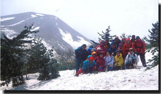 | 福島市民には「種まき兔」として親しまれている吾妻小富士の雪形「雪ウサギ」を間近に見ようということで、去る4月23日、残雪の吾妻小富士山麓を目差しました。 まだ営業が始まっていない微温湯温泉から、登山道を吾妻小富士の裾野を目差して登ること約2時間。出発時は晴れていたのに、森林限界に達した頃、天気予報通り寒冷前線がやってきて横殴りの風雪模様になってしまいました。高橋代表が上部の偵察に出るなど様子を見ていたものの、肝心の吾妻小富士も見えず、風も強くなり回復する気配もないのであきらめて引き返し始めました。 ところが、10分程下ったところで吾妻小富士が見えだし、天候回復の兆しが見えてきました。寒冷前線が通過したようで、急遽登り返し、雪ウサギが正面によく見える雪の丘まで上がりました。 丘の上からは、これまで麓からしか見たことのなかった雪ウサギが目の前に広がり、その大きさを実感することができました。そして、雪ウサギを眺めながらお昼を頂き、下山するころにはまた雪が舞い始めました。 「雪ウサギをみんなに見てもらいたい」今回の観察会を発案した高橋代表の願いが通じたのか、本当に絶妙なタイミングで雪ウサギに会うことができ、印象深い観察会になりました。 雪ウサギ観察会に参加して 伊藤順子 咲こうか咲くまいか、時ならぬ寒さに首をすくめているようなR115の桜並木。天気は下り坂と言う予報だけれど、車移動の途中、立派に目的の雪ウサギが望めて、ひとまず満足。数年前、微湯の送迎マイクロバスでワクワクドキドキしながら通った素晴らしい(?)山道が、立派な舗装道路になってしまって、運転は楽だけれど、何だか自然が遠くよそよそしくなった気がしてちょっと悲しい。それでも、芽吹きの山道 は、一瞬一瞬が名画のように美しく、思わずうっとり。(と、いけない。安全運転、安全運転。) 冬の眠りから覚めたらしい微湯の登山口から、一路雪ウサギを目指す。雪道の歩き方、特に雪解けの頃の落とし穴(?)の位置を教わって「なるほど♪」。 観察会の度に、何かひとつずつ利口に(?)なるのが嬉しい。もうひとつ今日の目玉は、「ショウジョウバカマの秘密」。それから「なぜ、立ち木の周りから雪が解けるか?」 etc .etc. そんな観察をしながら、小一時間ぐらい登り詰めた頃 急に雪が吹きかけてきた。一転俄かに掻き曇りの世界になってしまった。高橋さんが雪ウサギの様子を見に行った。、ガスで見えないので諦めて下り始めて数分か数十分、また日が差してきた。小富士が姿を現した。 登り返しはつらいけれど、老体に鞭打って引き返す。スキーですいすい降りられた方はそれ以上にお疲れさま。でも苦労した甲斐が200%以上。標高約1300m程のピークからの吾妻の眺望は、雪ウサギはさておき、ただ、ただ、素晴らしいの一言。特に高山の男沼・仁田沼方面に延びた裾野の木々を纏った美しさ。「大切にせねば」と思いつつ下山した。 |